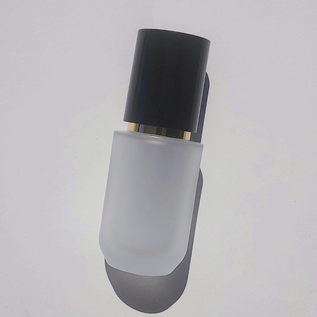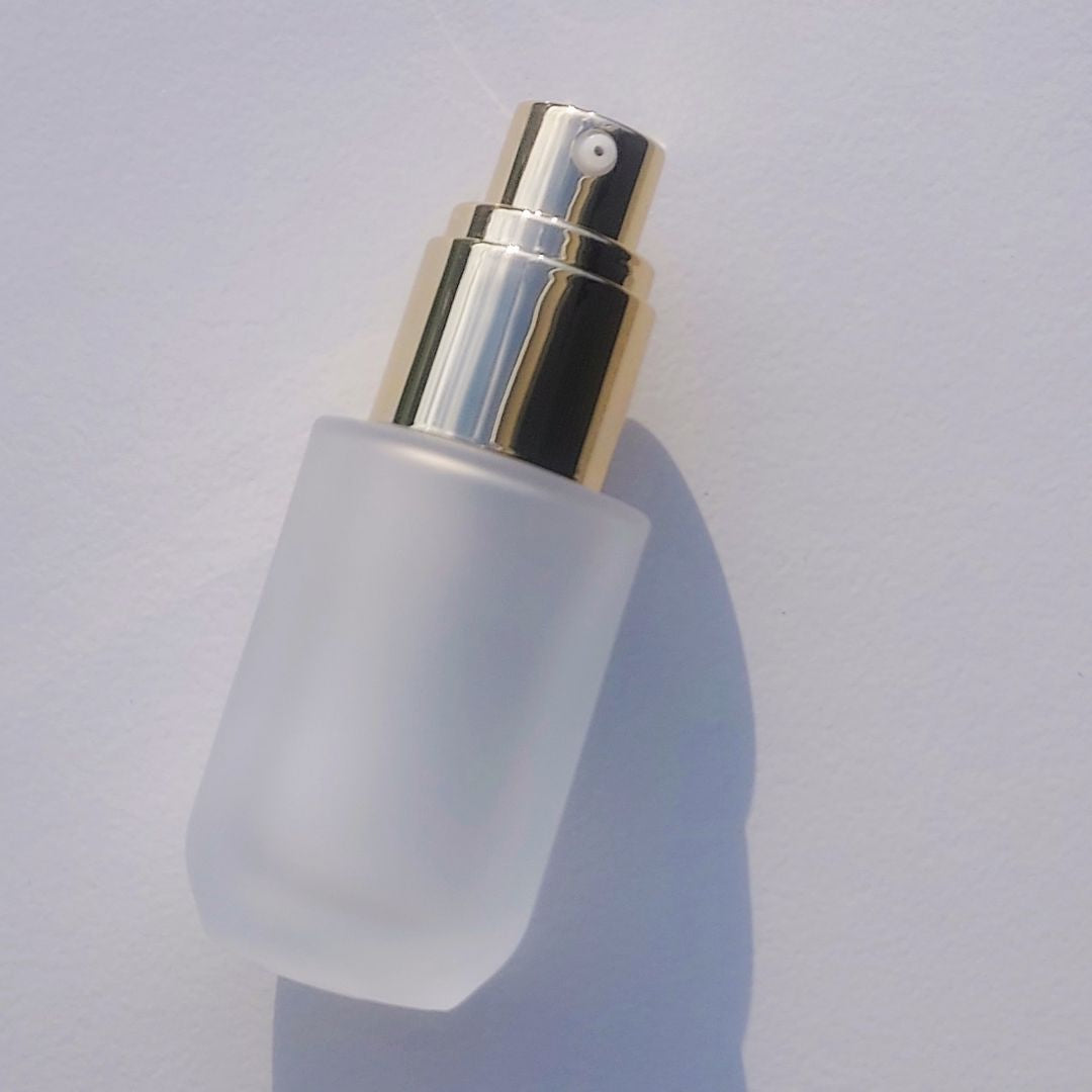 P12FB: Frosted Glass Bottle with Black Cap and Gold Pump